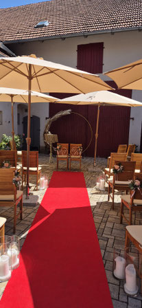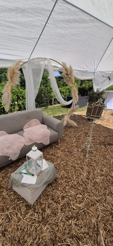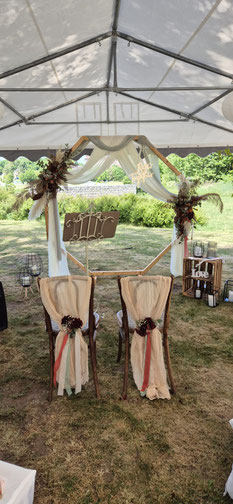 Diese Trauung fand im eigenen Garten der Beiden statt. Alles war ganz wundervoll dekoriert. Man merkte die Liebe zueinander. In meiner Rede griff ich das Lied "Ein Kompliment" der Sportfreunde Stiller auf., denn die beiden waren einfach "das Größte" füreinander. Ganz besonders: Ein eigens geschriebener Segen der Familie.